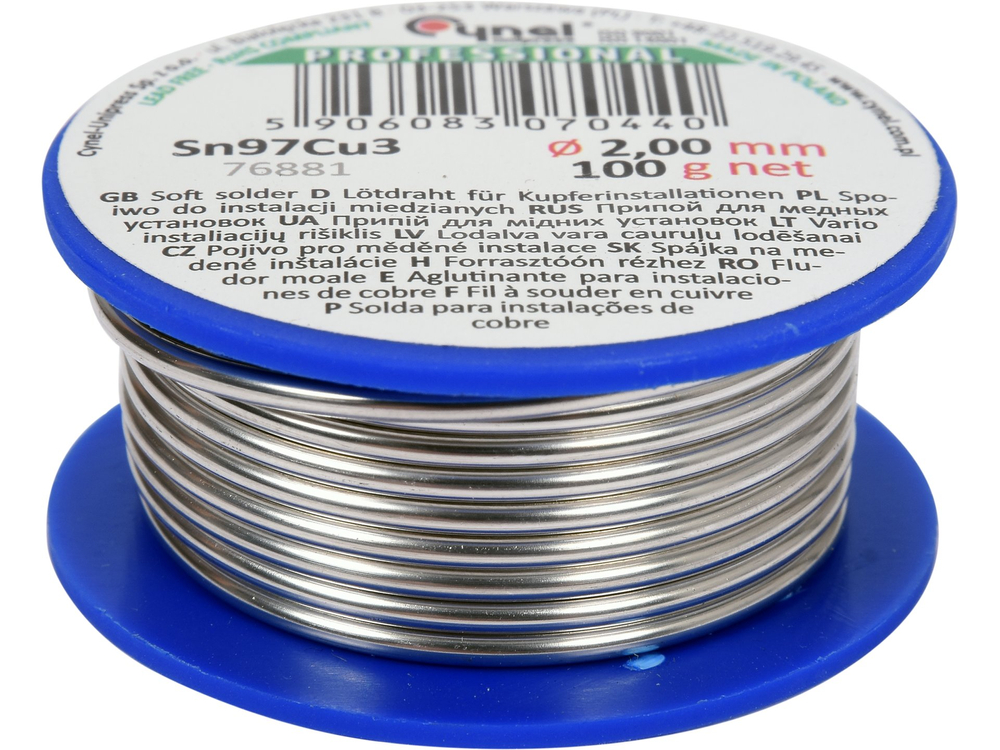 VIAZAČ, PÁJKOVÝ DRÔT PRE MEDENÉ INŠTALÁCIE NA CIEVKU 2,0MM, 100G, SN97CU3