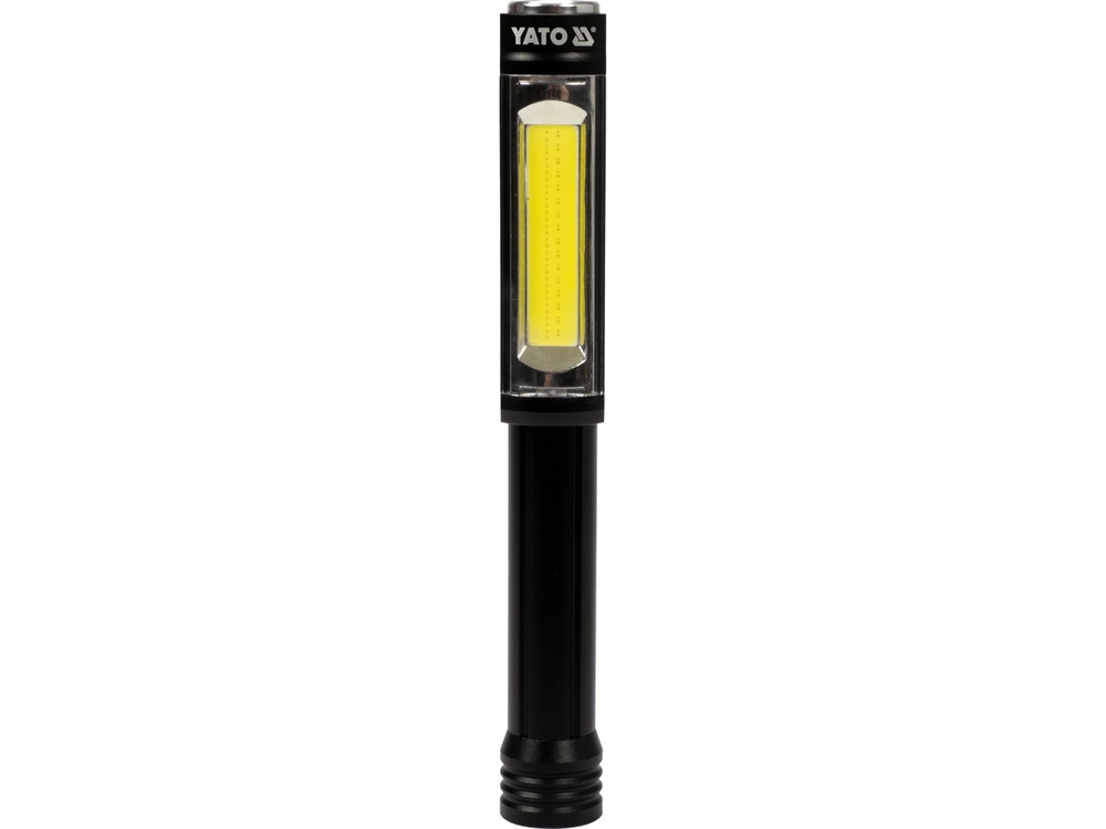 Hliníková inšpekčná baterka Yato s 3 režimami vrátane červeného výstražného svetla.