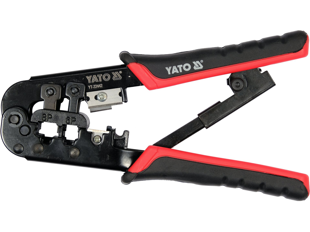 YT-22442 kliešte s račňovým mechanizmom na lisovanie telefónnych a sieťových svoriek. Kliešte sú vyrobené z uhlíkovej ocele, ktorá bola oxidovaná na ochranu proti korózii. Dvojzložkové plastové kryty rukovätí. Tvrdšia PP zložka pevne prilieha k telu, zatiaľ čo vonkajšia časť z TPR je príjemná na dotyk a má protišmykové vlastnosti.