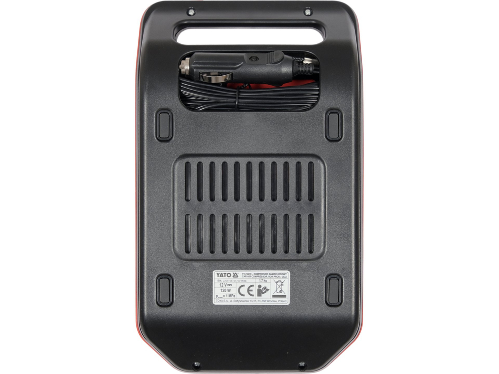 Kompresor do auta s elektronickým displejom a LED svetlami YATO YT-73470 je určený na nafukovanie kolies a duší automobilov, bicyklov, motocyklov, matracov, pontónov a lôpt. Vďaka možnosti čerpania energie priamo z cigaretového zapaľovača môže používateľ pracovať s vyššou účinnosťou. Zabudované LED svetlo umožňuje vykonávať operácie aj v tme. Vďaka transportnej rukoväti je prenášanie prístroja pohodlné a bezproblémové.
