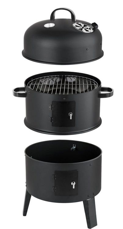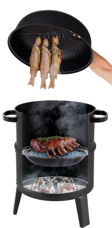 Záhradná prenosná udiareň vybavená 2 modulmi s miskou a pochrómovaným roštom. Umožňuje vám samostatne pripravovať tradičné výrobky: údeniny, klobásy, ryby a syry údené 2 spôsobmi - za tepla a za studena.