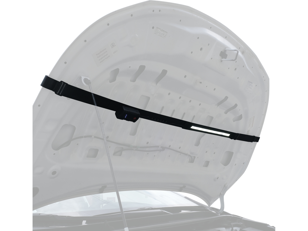 Dielenská lampa s veľmi praktickým spôsobom upevnenia. Svetelný zdroj je umiestnený na pružnom popruhu zakončenom prackami. Popruh sa dá predĺžiť v rozsahu 120-190 cm a je dodatočne nastaviteľný. Vďaka tomu ho možno pripevniť na poklopy motorového priestoru, dvere, operadlá sedadiel alebo dielenský nábytok. Napája sa pomocou zabudovanej nabíjateľnej batérie, ktorá sa nabíja káblom USB C. Lampa je vybavená indikátorom nabitia. Pracuje v režimoch vysoký, stredný a nízky výkon.