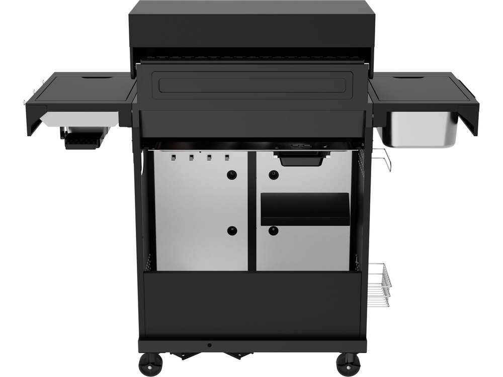 - bocný horák na infracervené žiarenie s výkonom 3,5 kW dosahuje extrémne vysokú teplotu 800 stupňov, umožňujúc rýchle osmaženie a prípravu steakov (nedoporučuje sa používať ako horák na ohrev hrncov, panvíc atď.)