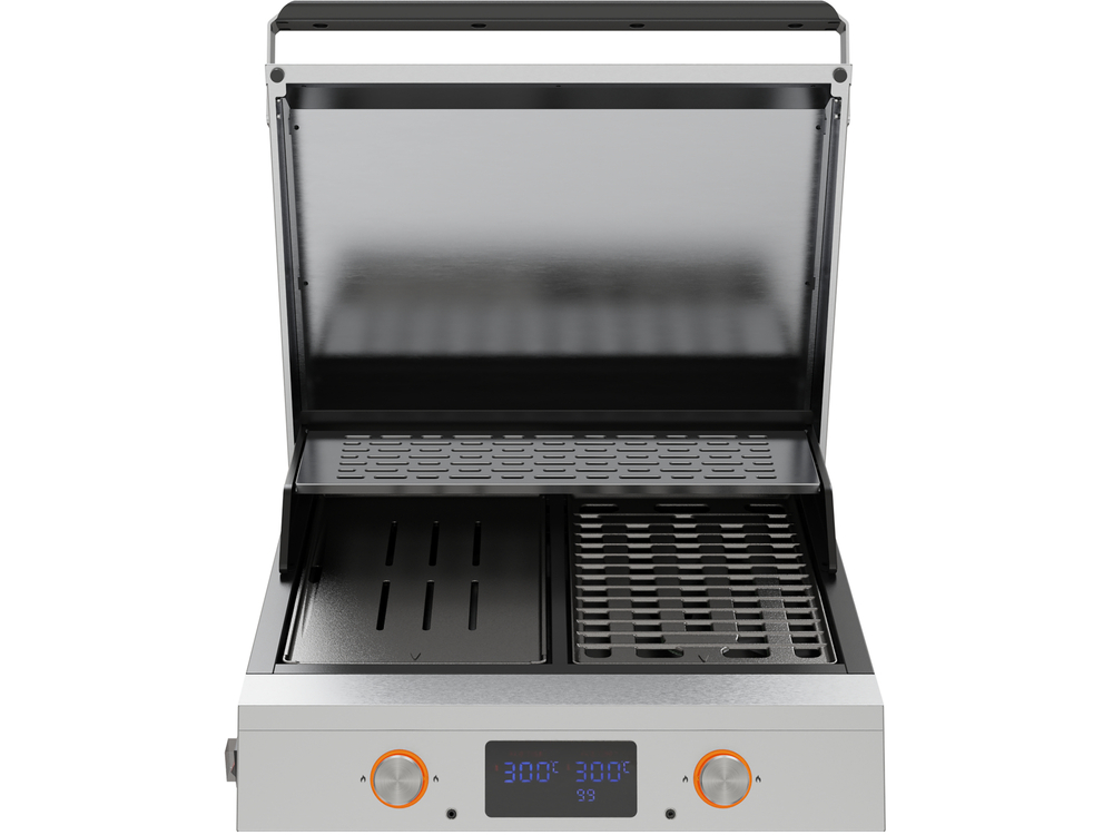 2 samostatne ovládané zóny grilovania zabezpečujú nezávislosť spracovania. Možnosť výberu inej teploty a času práce, ako aj kontroly teploty zložiek pomocou pripojenej sondy umožňujú pripraviť ideálne vysmažené výrobky s zachovaním ich šťavnatosti a prirodzeného chuti.