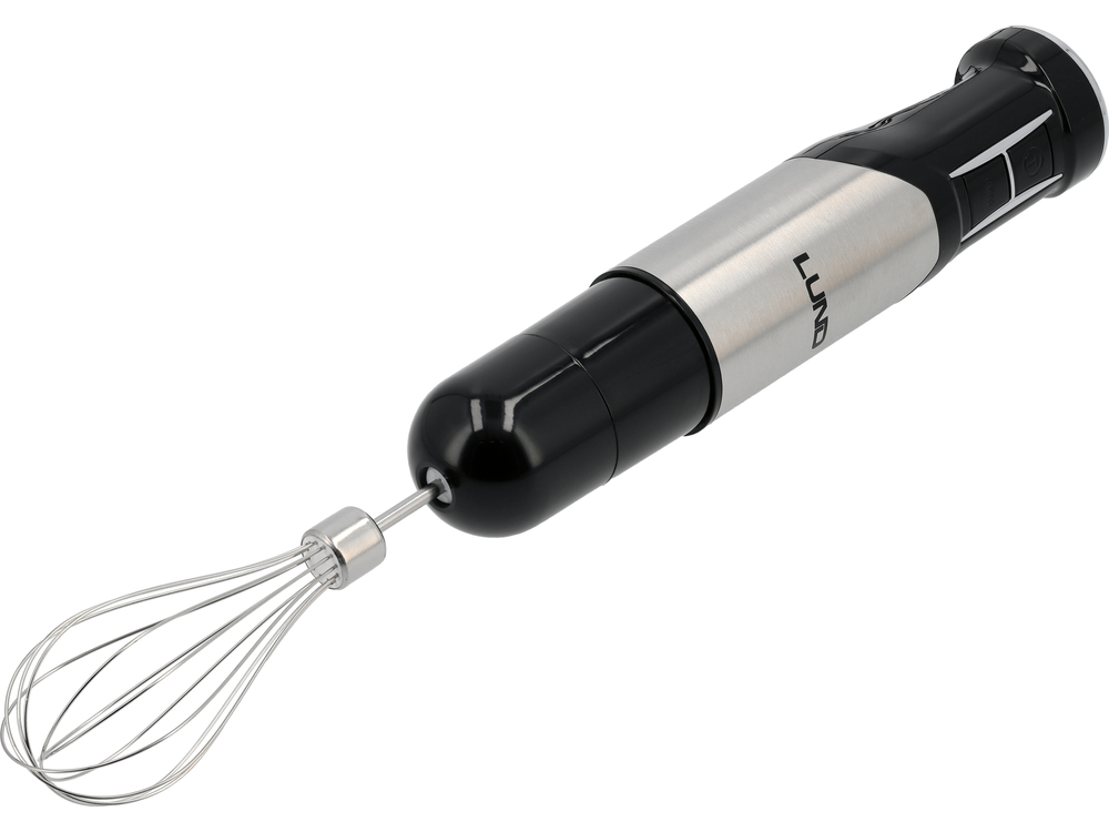 - ručný mixér s štvornásobným, oceľovým nožom - zabezpečuje rovnomerné miešanie a hladkú konzistenciu, ideálne pre krémové polievky, omáčky, pyré a koktaily