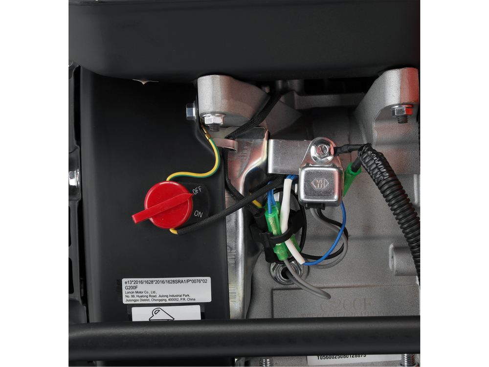 - silný motor pre náročné úlohy - 4-taktný motor Loncin s objemom 196 cm³ a výkonom 5,44 koní, ktorý pracuje so rýchlosťou 3600 ot./min, zaručuje spoľahlivosť pri intenzívnom používaní v záhradách, ovocných sadoch a na zelených plôchach