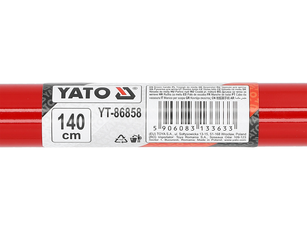 Spoľahlivá rukoväť z ocele s povrchovou úpravou plastom, ukončená kužeľovitým závitom. Vhodná pre metly YT-86854, YT-86855, YT-86856, YT-86857.