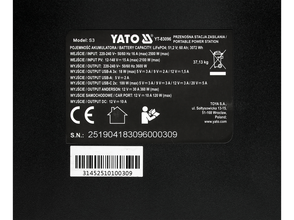 Prepraviteľná, pokročilá záložná stanica YATO s veľkou kapacitou 3072 Wh a výstupným výkonom 3600 W, vybavená moderným akumulátorom LiFePO4, bola navrhnutá ako stabilné a dlhodobé zdroj energie pre náročné aplikácie. Technológia lithno-železo-fosfátového akumulátora zabezpečuje nadpriemernú životnosť článkov, vysokú odolnosť voči hlbokému vybitiu a udržanie stabilných pracovných parametrov aj pri dlhodobom a intenzívnom zaťažení. Tak veľká zásoba energie umožňuje napájanie spotrebičov a osvetlenia, ako aj elektrických náradí a vybraných domácich spotrebičov, bez potreby častého dopĺňania energie.