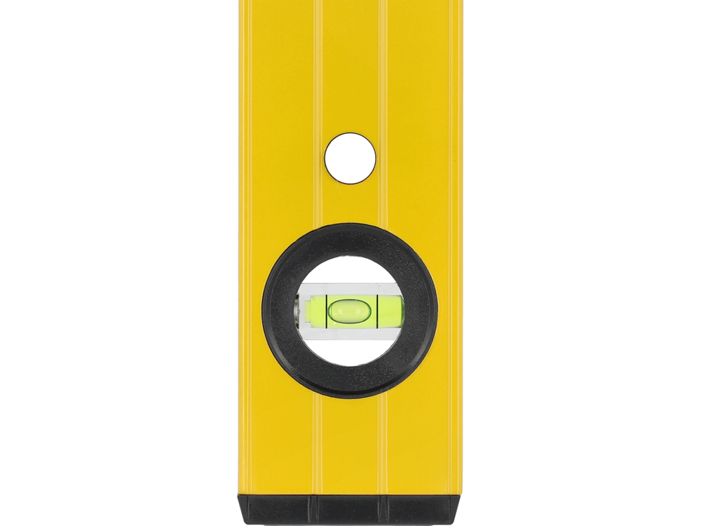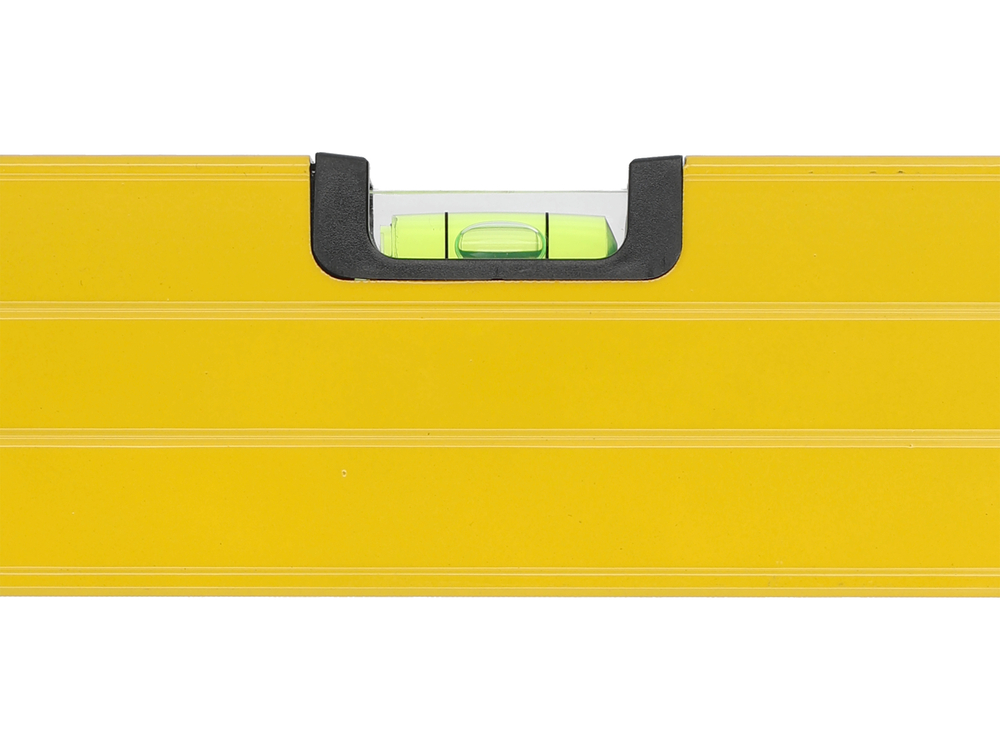 Nivel de burbuja fabricado con perfil de aluminio. Dispone de dos asas y tres ampollas para determinar la vertical, la horizontal y el ángulo de 45°. Los extremos del nivel de burbuja y el soporte de la ampolla están protegidos contra daños mediante inserciones de plástico flexible.