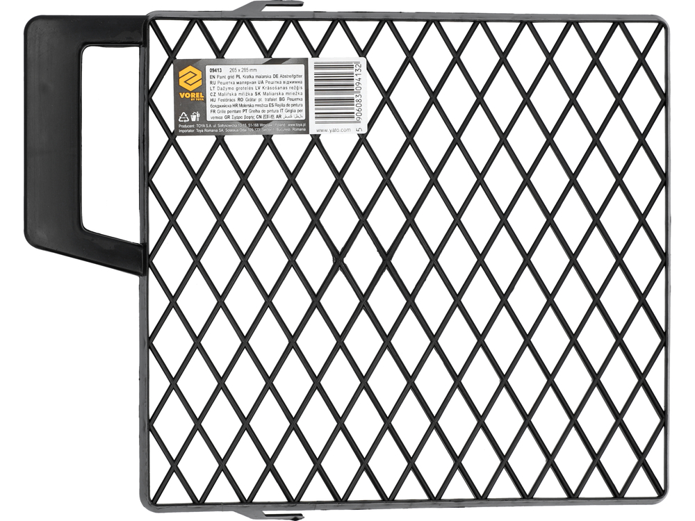 Rejilla de pintura de 265x285 mm fabricada en plástico. Se utiliza para escurrir el exceso de pintura de un rodillo o brocha.