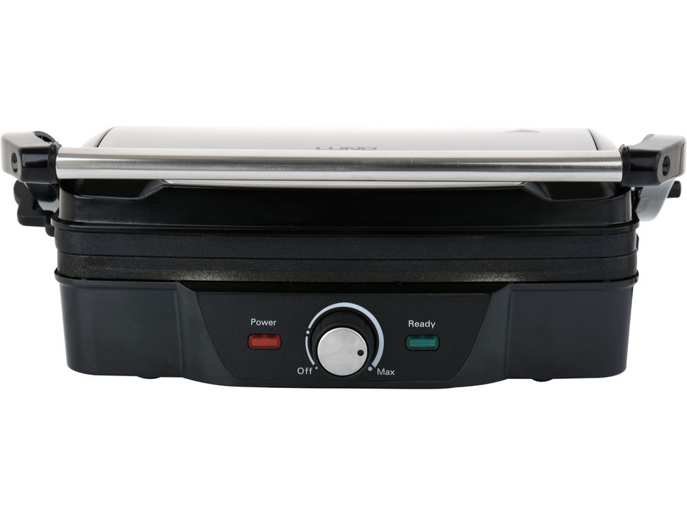 Un potente grill eléctrico diseñado para preparar rápidamente carne, pescado, verduras y tostadas. La función de ajuste de las placas de cocción permite adaptarlas a la altura de los productos a tostar. Una ventaja adicional, al duplicar la superficie de asado, es que se puede desplegar hasta una posición de 180 grados.