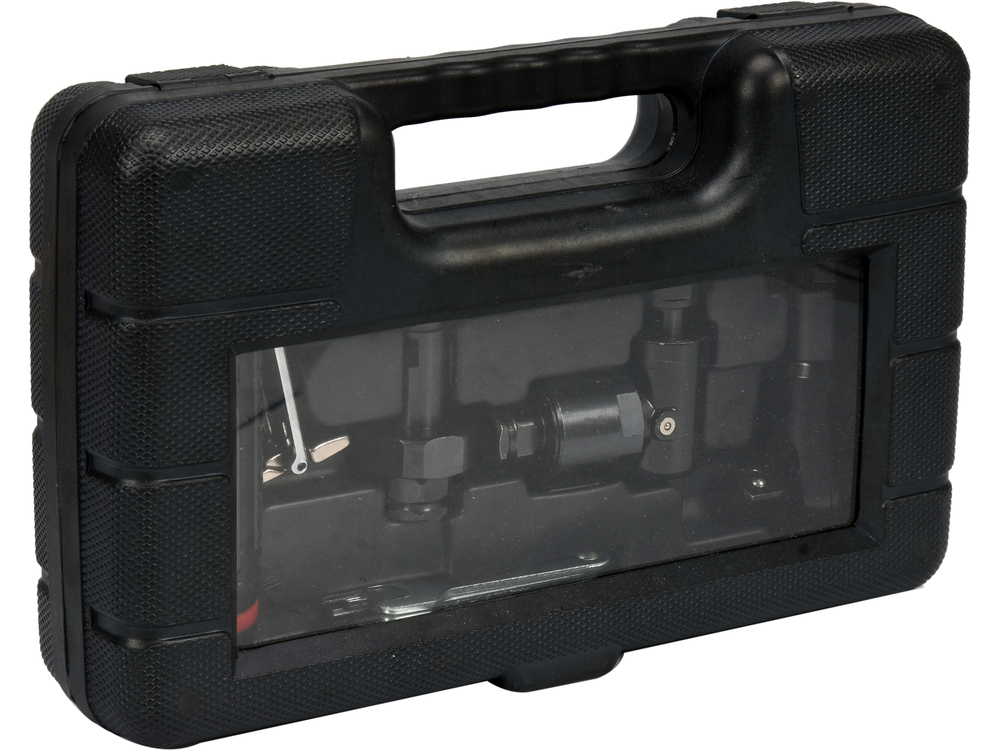 carcasa de accionamiento, accesorio x3 (trinquete neumático, amoladora recta neumática, amoladora angular neumática), conector de manguera, llave portaherramientas x4