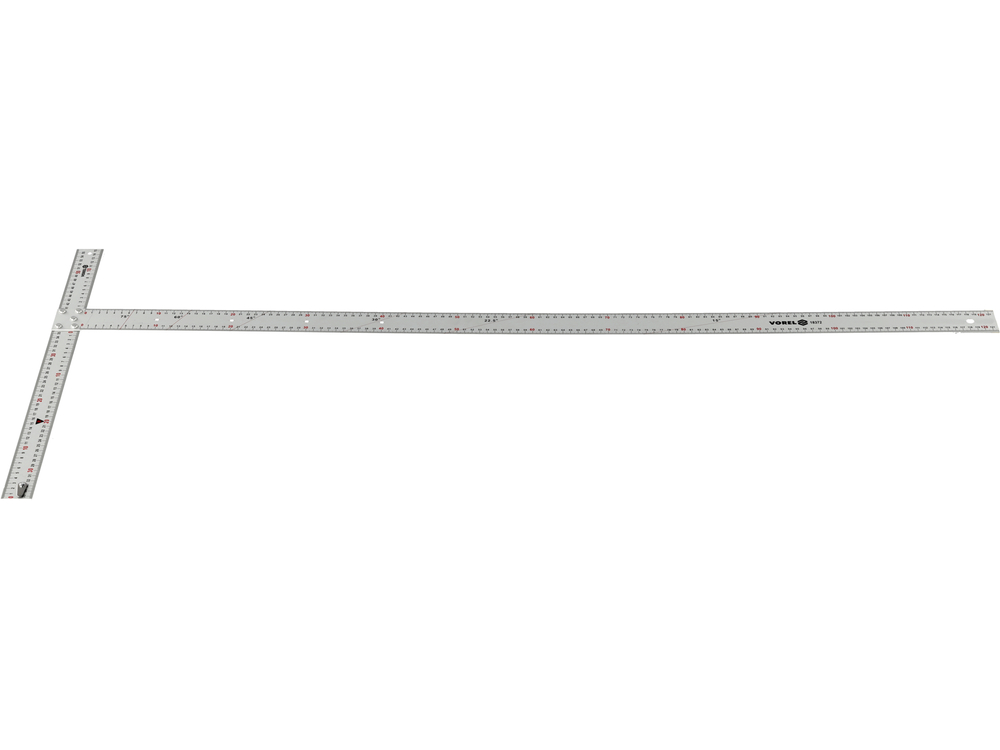 Longitud del brazo 1200 x 390 mm con graduaciones milimétricas marcadas permanentemente en todos los bordes. En el brazo más corto de la escuadra hay un trinquete de bloqueo para facilitar la fijación durante las mediciones.