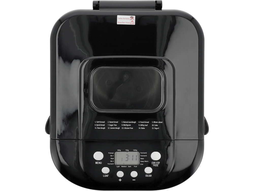 Panificadora con 15 programas automáticos para la elaboración de pan y la preparación de masas. Además del programa, el usuario también selecciona el tamaño del pan y el grado de dorado de la corteza. También tiene la opción de programar un arranque retardado de la unidad.
