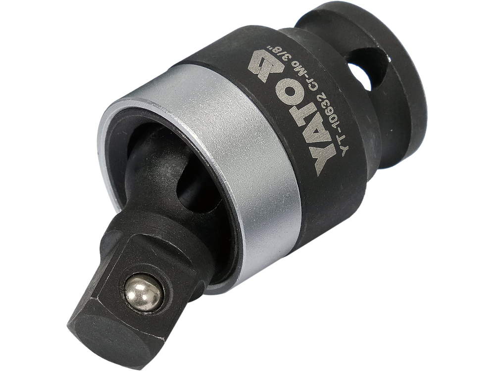 Articulación esférica, articulación de impacto de 3/8''. Fabricado con el exclusivo acero aleado CrMo SCM-440, que tiene el doble de resistencia a la tracción que el acero al carbono ordinario y el triple de límite elástico. Gracias al acero utilizado, los vasos no se rompen por impacto y conservan su dimensión nominal durante más tiempo.
