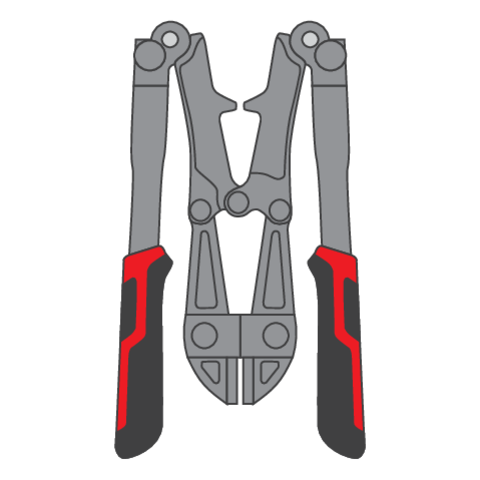 Cizalla de 450 mm de longitud para cortar barras. Cuando las empuñaduras articuladas están desbloqueadas y plegadas, la longitud de la cizalla se reduce a 280 mm. Esto permite que quepan en cajas de herramientas y bolsas pequeñas. Los mangos de dos componentes permiten trabajar con seguridad al cortar.