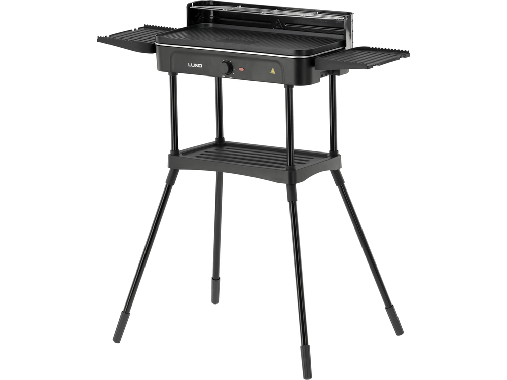 Parrilla eléctrica LUND para preparar carne, pescado y verduras. La placa ondulada permite cocinar una gran cantidad de alimentos. Una rejilla calefactora adicional aumenta la funcionalidad de la unidad. La barbacoa se puede utilizar en el jardín, en la terraza, pero también en el interior. Un estante inferior y dos laterales ofrecen espacio adicional para accesorios, condimentos y bebidas. El tubo calefactor de acero inoxidable garantiza un calentamiento rápido y una distribución uniforme del calor. El borde más alto facilita mantener limpia la zona alrededor de la parrilla.