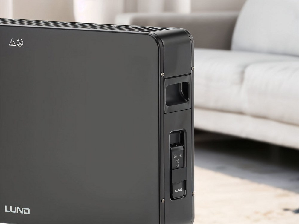 Calefactor convector negro con control de temperatura. Funciona en uno de los tres rangos de potencia seleccionables de 1000 W, 1300 W o 2300 W y en modo anticongelante. El calefactor está equipado con un interruptor independiente para activar el ventilador. Gracias al control preciso de la temperatura, la calefacción se inicia cuando la diferencia entre la temperatura ambiente y la del radiador es superior a 2℃. El modoanticongelanteenciendeel calefactorsila temperatura ambientedesciende por debajo de5℃. El temporizadorsirvepara programar el tiempo de funcionamiento de la estufa, tras el cual se apagará automáticamente. El tiempo de operación puede ajustarse de 1 a 24 horas. Mando a distancia incluido para facilitar el control.