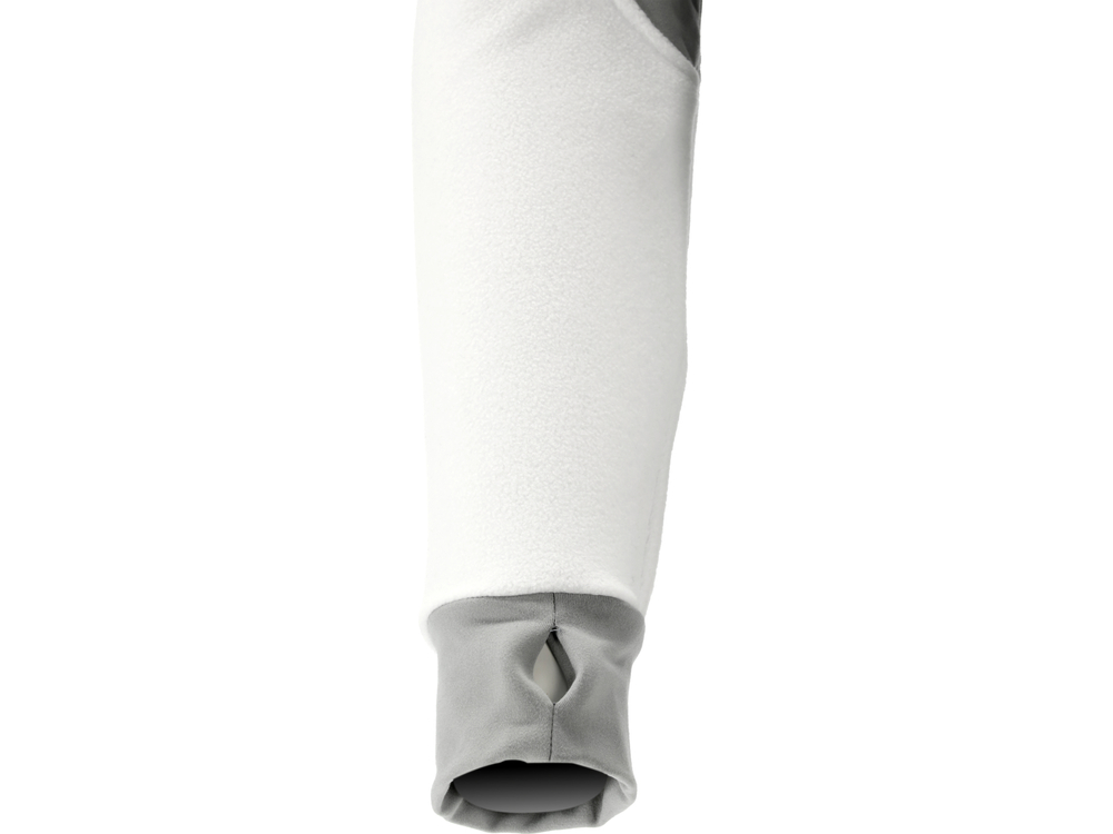 - El tejido elástico bidireccional en los laterales, debajo de los brazos y parcialmente en la parte inferior de las mangas reduce casi a cero las molestias conocidas del forro polar tradicional, por ejemplo, al realizar giros del torso o al trabajar con los brazos por encima de la cabeza. También proporciona una mejor circulación del aire, haciéndole sudar menos, especialmente bajo los brazos.