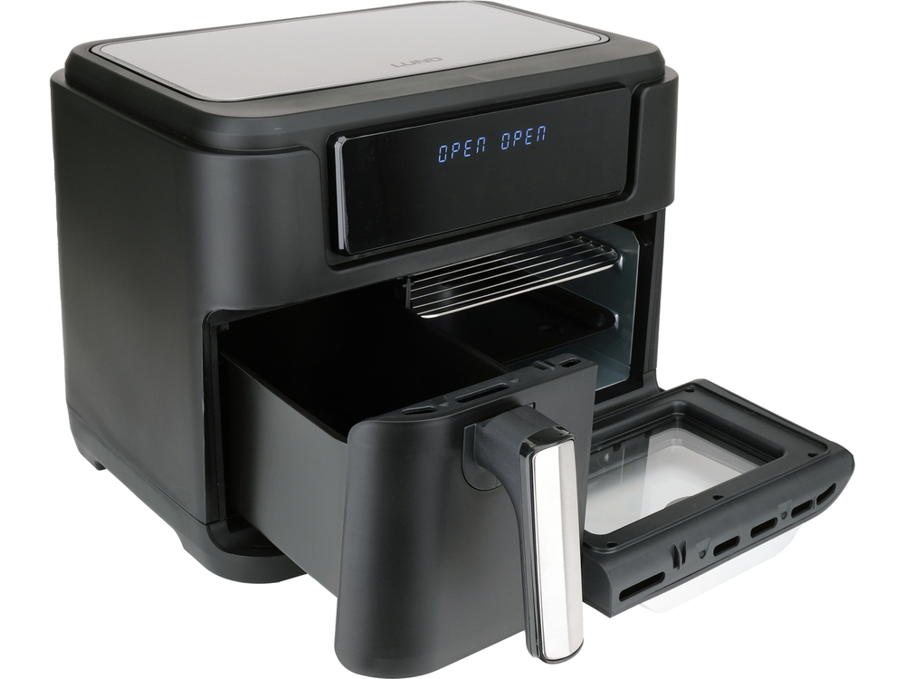 Freidora multifuncional sin aceite con dos recipientes separados es un dispositivo práctico que reemplazará varios electrodomésticos de cocina, permitiendo preparar comidas saludables y rápidas para toda la familia y los invitados. Tiene un revestimiento antiadherente que permite usar una pequeña cantidad de grasa o eliminarla por completo para cocinar platos sabrosos y aromáticos. Permite descongelar, calentar, hornear, freír y asar verduras, carne, pescado, así como postres dulces y salados.