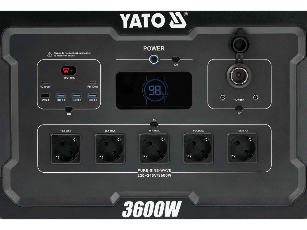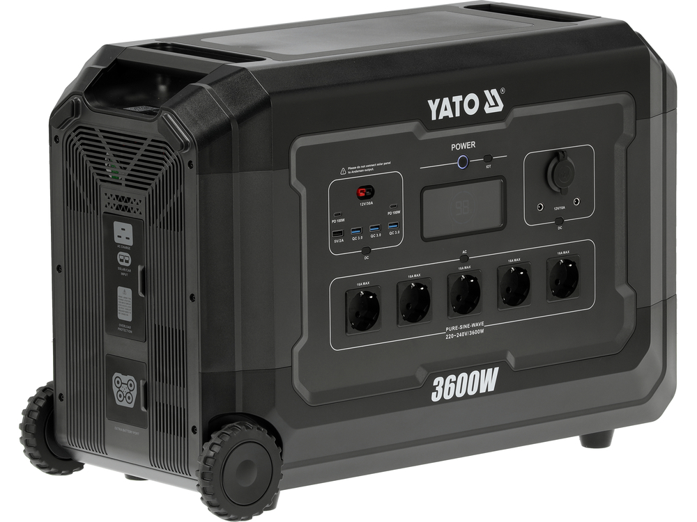 Estación de energía avanzada portátil YATO con una capacidad muy grande de 3072 Wh y una potencia de salida de 3600 W, equipada con una moderna batería de LiFePO4, ha sido diseñada como una fuente de energía estable y a largo plazo para aplicaciones exigentes. La tecnología de litio-hierro-fosfato proporciona una vida útil excepcional de las celdas, alta resistencia a descargas profundas y mantenimiento de parámetros de funcionamiento estables, incluso con cargas intensivas y prolongadas. Esta gran reserva de energía permite alimentar tanto la electrónica de consumo y la iluminación, como herramientas eléctricas y electrodomésticos seleccionados, sin necesidad de recargar energía con frecuencia.