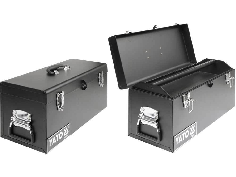Чудовий ящик для інструментів виготовлений з високоякісних матеріалів, які гарантують його довговічність і надійність в усі моменти використання. Коробка з порошковим покриттям, міцної конструкції. Має основне відділення та знімну полицю, два металевих замки та дві додаткові бічні ручки. Ящик виготовлений з листової сталі та замикається на навісний замок.