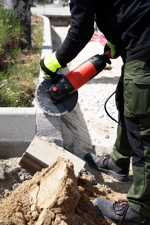 - Mocna kątówka; duża fleksa; fleks; diaks; diax; flex; gumówka; mocna gumówka; gumówka dla brukarza; kątówka mocna; duża szlifierka kątowa; cięcie kostki brukowej; cięcie pustaków; do cięcia bruku; kostka granitowa; czym ciąć krawężniki; obrzeża trawnikowe