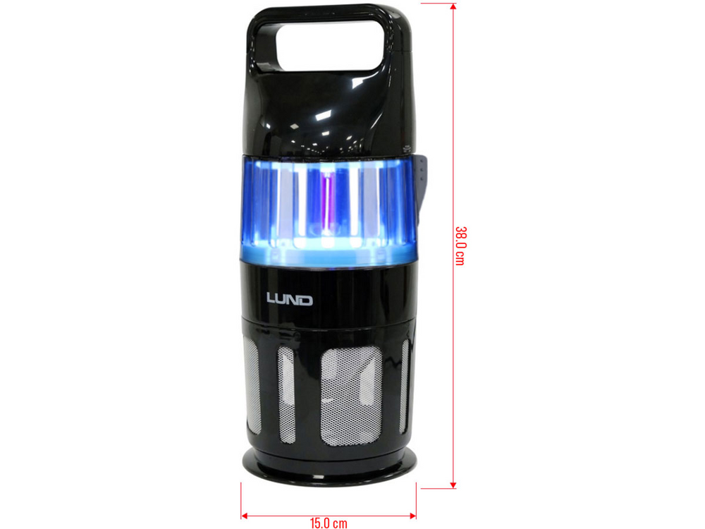 Лампа-приманка для комах з вентилятором для приваблення та відлову літаючих комах, таких як комарі, мошки, оси, моль та інші. Прилад використовує потужні нитки .з діапазоном довжини хвиль 365 нм та робочою зоною дії 60 м260м2. Після того, як комахи втягуються вентилятором, вони зберігаються в контейнері з унікальною воронкою, яка блокує можливість втечі. Додатковою перевагою є ручка для перенесеннята міцна транспортувальнасумка.oacute;d довжиною 1,9м