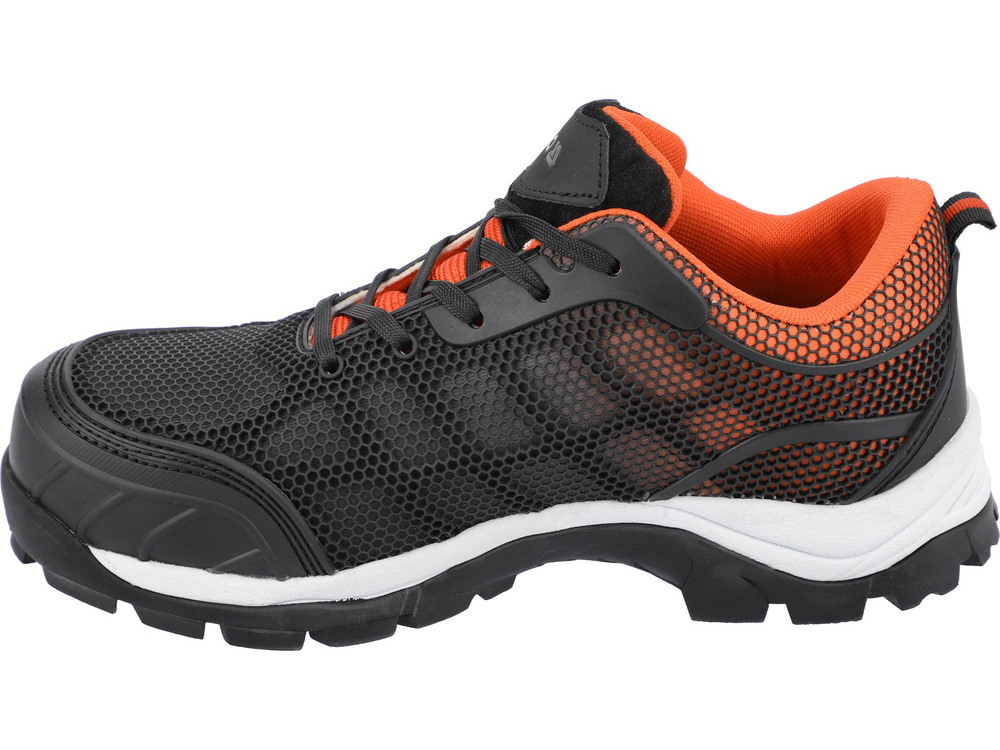 Напівчеревики не містять металу. Як устілка антипроколювальна, так і підошва є гнучкими і, на відміну від взуття з традиційною підошвою з ПУ та сталевою устілкою, не обмежують згинання середнього відділу стопи. Халява з термопластичного KPU - це не лише спортивний вигляд, але перш за все висока стійкість до розривів та протертостей. Структура сітки в поєднанні з матеріалом з підкладки гарантує вентиляцію та високий комфорт під час багатогодинної роботи.