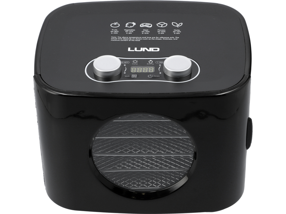 Харчова сушарка для сушіння фруктів, грибів, овочів, квітів, зелені та м'яса. Висока продуктивність при низькому енергоспоживанні. Сушка в діапазоні температур: 30-80℃. Установка часу і температури за допомогою зручних циферблатів.