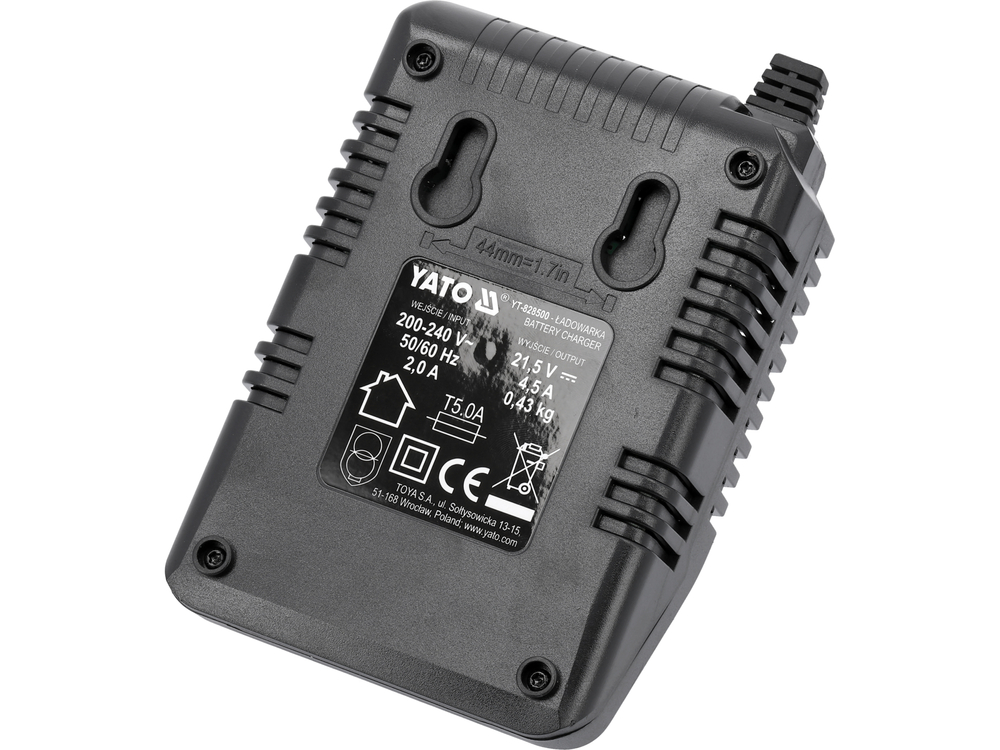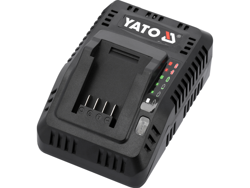 Швидкий зарядний пристрій для всіх 18-вольтових системних акумуляторів YATO. Вбудована система тестування продуктивності та температури акумулятора піклується про термін його служби. Не починає заряджати, коли елементи занадто гарячі. У разі зберігання акумулятора при мінусовій температурі, зарядка починається, коли температура батареї досягає +5 градусів Цельсія.