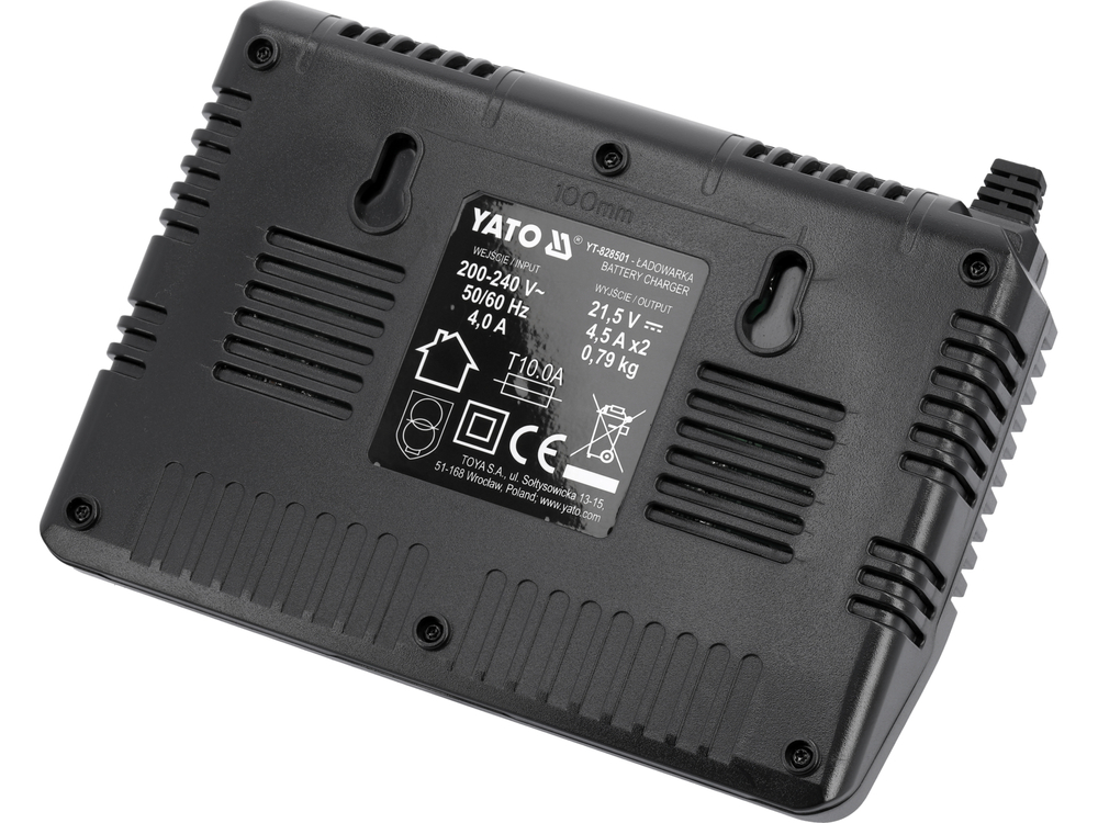 Швидкий подвійний зарядний пристрій для всіх 18-вольтових системних акумуляторів YATO. Вбудована система тестування продуктивності та температури акумулятора піклується про термін його служби. Не починає заряджати, коли елементи занадто гарячі. У разі зберігання акумулятора при мінусовій температурі, зарядка починається, коли температура батареї досягає +5 градусів Цельсія.