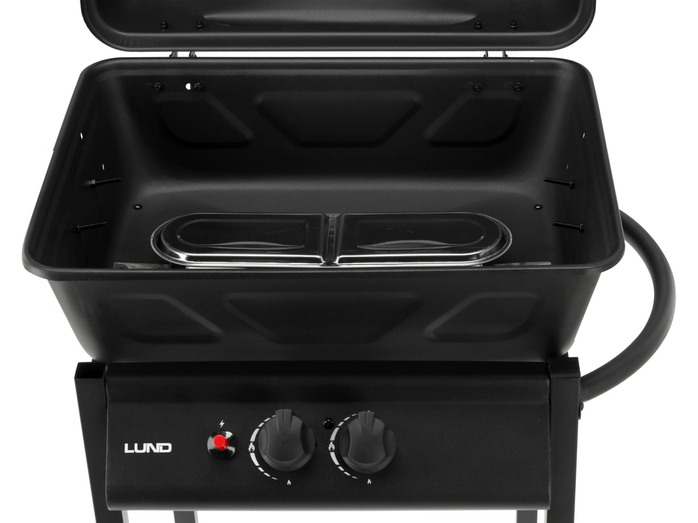 Газовий гриль з двома конфорками для приготування їжі на відкритому повітрі, зі зручним управлінням для ідеального запікання їжі. Компактний розмір дозволяє легко зберігати гриль у невеликих приміщеннях.