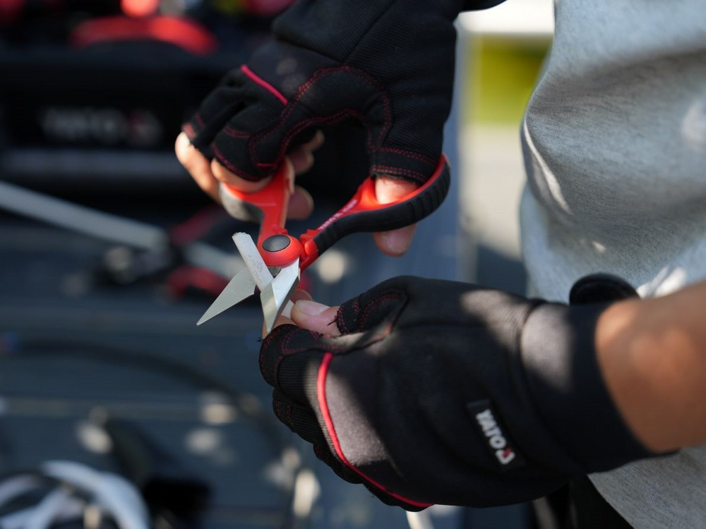 Ножиці для електриків з лезами, що дозволяють різати електричні кабелі перерізом до 10мм2. Вони мають двокомпонентні ковпачки для ручок. Встановлений безпосередньо на інструмент, твердіший компонент з поліпропілену міцно прилягає до корпусу. Зовнішня частина TPR має протиковзкі властивості та приємна на дотик. Велика міцна з'єднувальна заклепка зменшує розкидання ріжучих кромок з боку в бік. Поставляється зі зручною пластиковою кобурою, яку можна прикріпити, наприклад, до брючного ременя або засунути в кишеню.