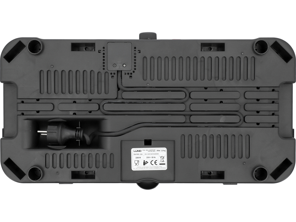 Електричний гриль LUND для приготування м'яса, риби та овочів. Гофрована варильна поверхня дозволяє готувати велику кількість їжі. Додаткова нагрівальна решітка збільшує функціональність пристрою. Барбекю можна використовувати в саду, на терасі, але також і в приміщенні. Нижня полиця і дві бічні полиці забезпечують додатковий простір для аксесуарів, приправ і напоїв. Нагрівальна трубка з нержавіючої сталі забезпечує швидке нагрівання і рівномірний розподіл тепла. Завдяки вищому обідку легше підтримувати чистоту навколо гриля.