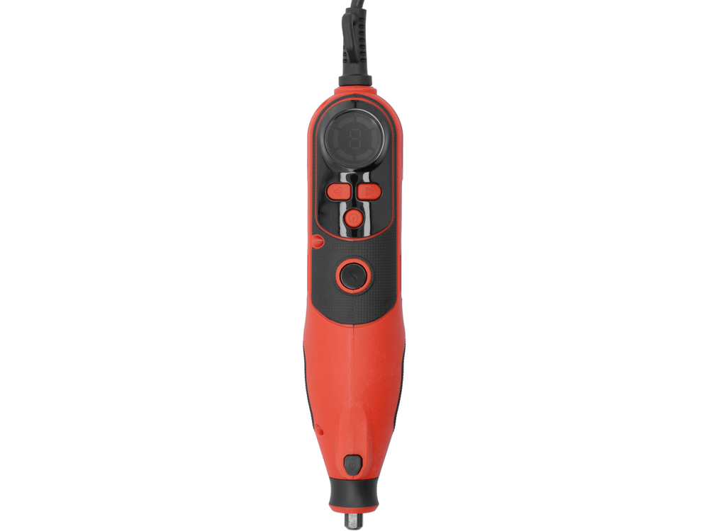 Зручний інструмент з живленням від мережі для точної обробки різних матеріалів. Використовується для свердління, шліфування, фрезерування, гравіювання, полірування, очищення. Він має шість налаштувань швидкості, від 10 000 до 35 000 об/хв, що дозволяє адаптувати швидкість до конкретних завдань. Швидкість регулюється електронікою. Тримач інструменту є самоцентрувальним. Світлодіодне освітлення полегшує виконання точних завдань. Потужність 130 Вт. У комплекті з міні-шліфувальною машиною є додатковий тримач інструменту на гнучкій штанзі, ключ для тримача інструменту, захисний кожух, фіксатор шпинделя штанги, насадка для фрезера та 82 абразивні насадки.