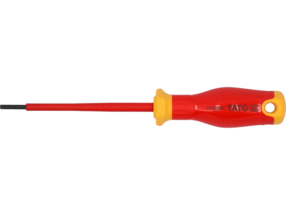 Ізольований викрутка з серії slim з плоским кінцем. Звужена конструкція штифта з відповідною ізоляцією полегшує доступ до важкодоступних місць і гарантує безпечну роботу під напругою до 1000 В.
