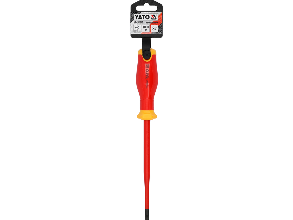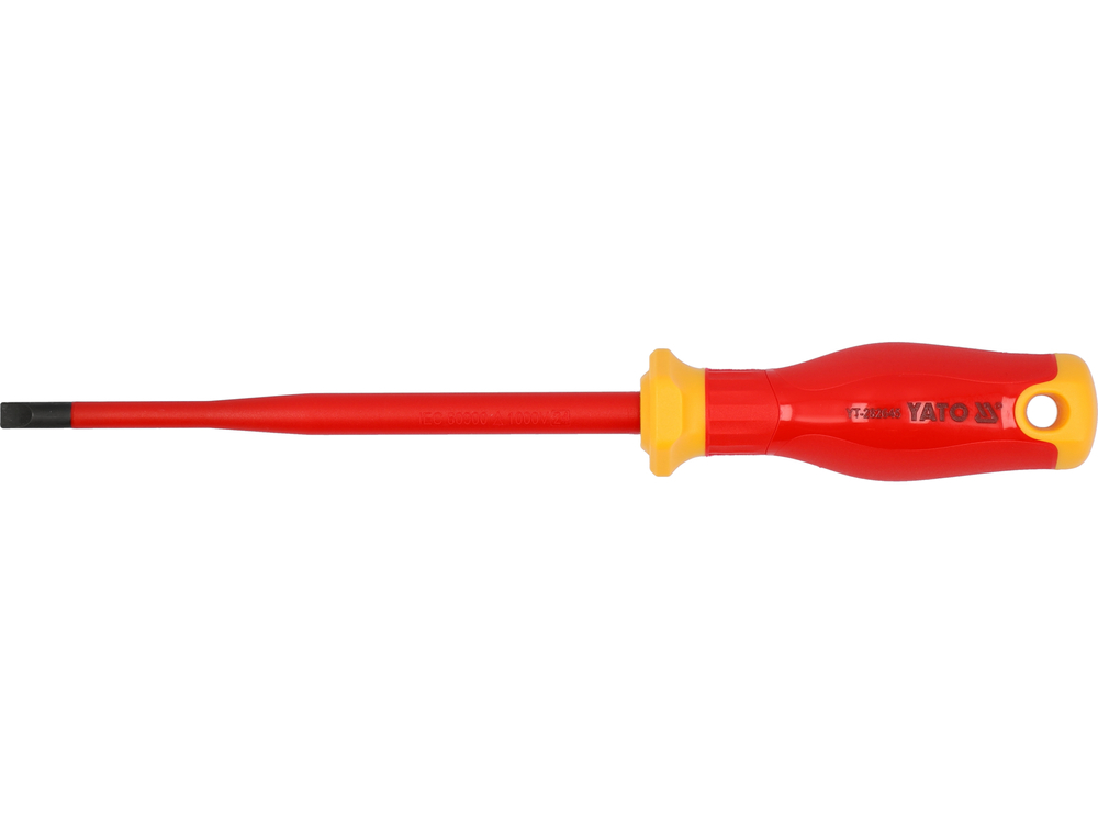 Ізольований викрутка з серії slim з плоским кінцем. Звужена конструкція штифта з відповідною ізоляцією полегшує доступ до важкодоступних місць і гарантує безпечну роботу під напругою до 1000 В.