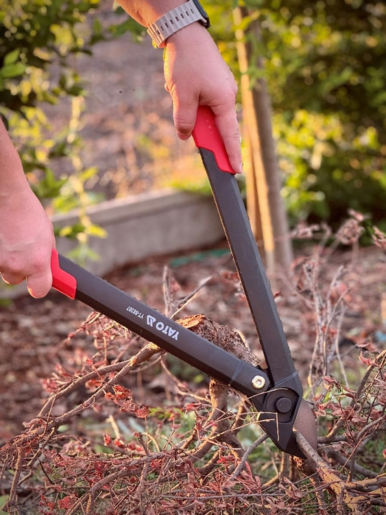 Продумана конструкція допомагає передавати силу на лезо, що полегшує обрізання твердих гілок без надмірного навантаження на користувача. Лезо з закругленим вигином виконує точні і чисті різи. Виготовлене з високоякісної вуглецевої сталі 65 Mn, причому верхнє покрите додатковим шаром PTFE, що зменшує тертя і захищає від корозії.