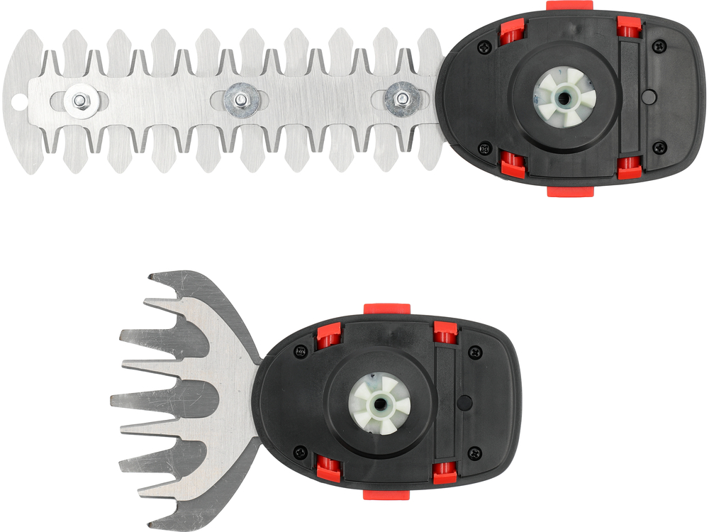 Дуже легкі, бездротові ножиці 2 в 1 полегшують догляд за зеленню в домашньому саду. Завдяки змінним насадкам за кілька секунд можна переключити режим роботи з точного стриження трави на формування кущів, без необхідності використання додаткових інструментів.