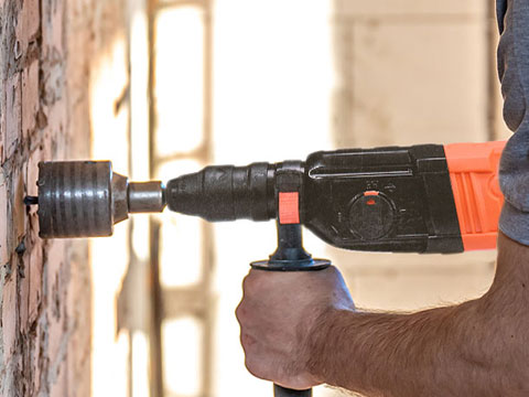 Wiertłami przebiciowymi wykonamy otwory o średnicy od 40 do 80 mm, natomiast koronami - od 40 do 155 mm.